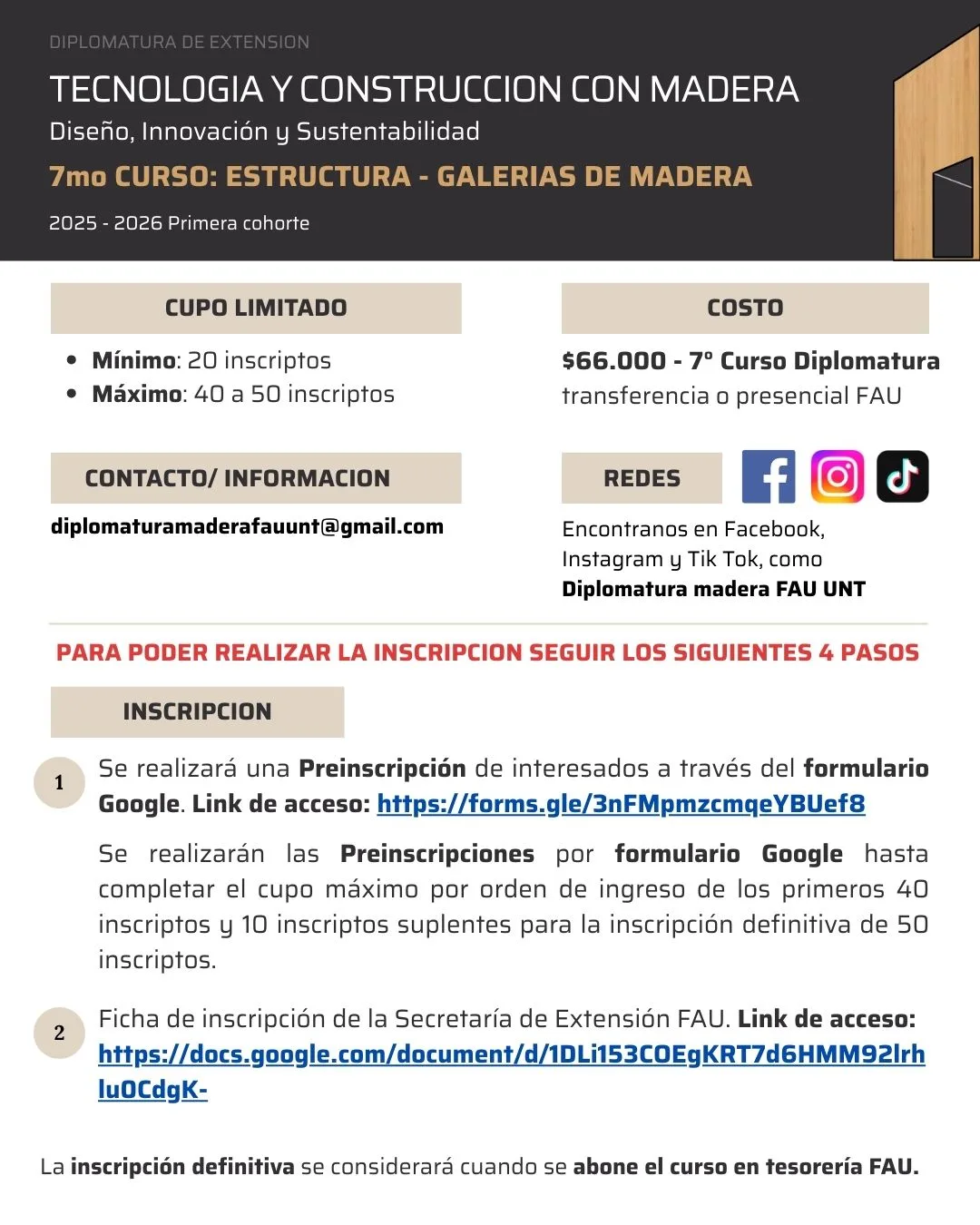 👥 DESTINATARIOS: Arquitectos, diseñadores, ingenieros civiles y forestales, técnicos y profesionales de la construcción, comerciantes, empresarios, carpinteros, artesanos, docentes de arquitectura, ingeniería y diseño, estudiantes de arquitectura, ingeniería, diseño, escuelas técnicas y personas que estén relacionadas con el tema madera.