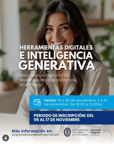 Destinatarios: Tutores de escritura, tesistas (becarios/as del programa de Doctorados 2024) y estudiantes de posgrado de la UNT interesados en incorporar herramientas y estrategias para integrar la inteligencia artificial en las distintas etapas de la investigación académica.