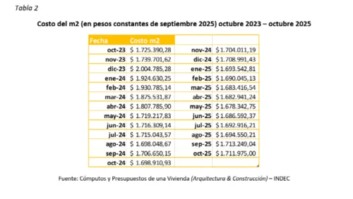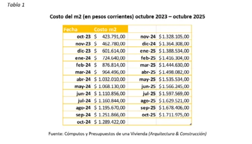 A fin de analizar con mayor precisión la evolución del costo de construcción, se actualizaron los valores por medio del Índice de Precios al Consumidor (IPC), publicado por el INDEC. Este procedimiento permite expresar los costos en pesos constantes de septiembre de 2025, facilitando comparaciones intertemporales.