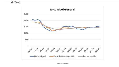 En agosto de 2025, la serie original del ISAC registró un incremento interanual del 0,4% respecto a igual mes del año anterior. Asimismo, el acumulado de los primeros ocho meses del año muestra una suba del 8,0% en comparación con el mismo período de 2024.