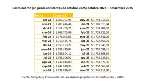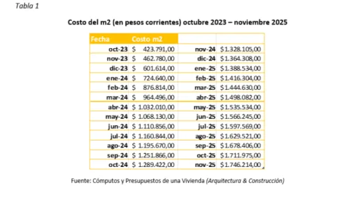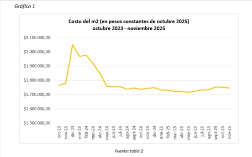 A fin de analizar con mayor precisión la evolución del costo de construcción, se actualizaron los valores por medio del Índice de Precios al Consumidor (IPC), publicado por el INDEC. Este procedimiento permite expresar los costos en pesos constantes de octubre de 2025, facilitando comparaciones intertemporales.