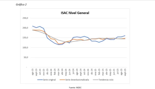En septiembre de 2025, el ISAC presenta una suba de 6,8% con respecto a igual mes de 2024. El acumulado de los nueve primeros meses del índice serie original presenta un aumento de 7,8% respecto al mismo período de 2024.