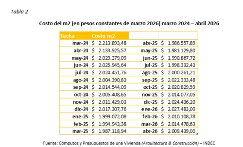 Cabe destacar que el uso de pesos constantes permite neutralizar el efecto del incremento general de precios sobre los costos, transformando los valores monetarios a precios de un mes de referencia. En este caso, se eligió marzo 2026 como base, dado que corresponde al último dato oficial disponible del IPC al momento del cierre editorial.