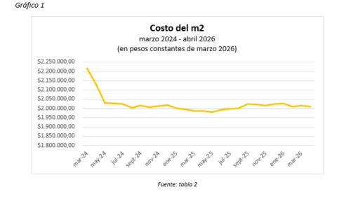 A fin de analizar con mayor precisión la evolución del costo de construcción, se actualizaron los valores por medio del Índice de Precios al Consumidor (IPC), publicado por el INDEC. Este procedimiento permite expresar los costos en pesos constantes de marzo de 2026, facilitando comparaciones intertemporales.