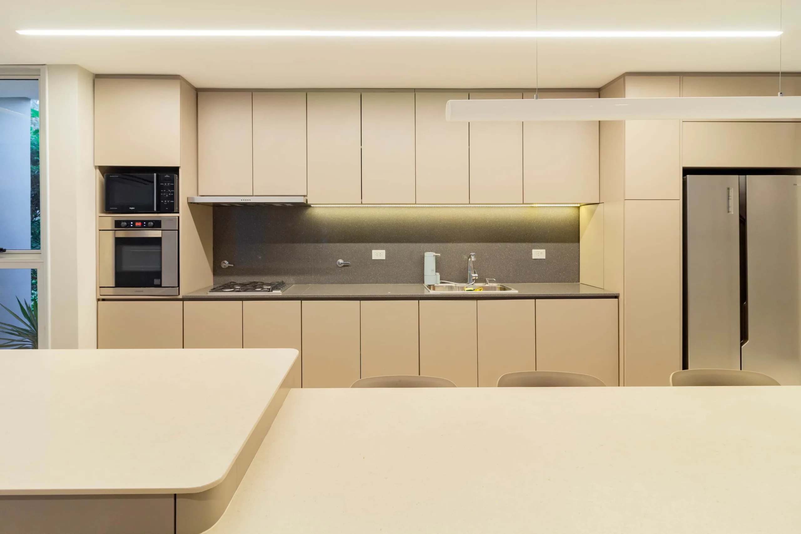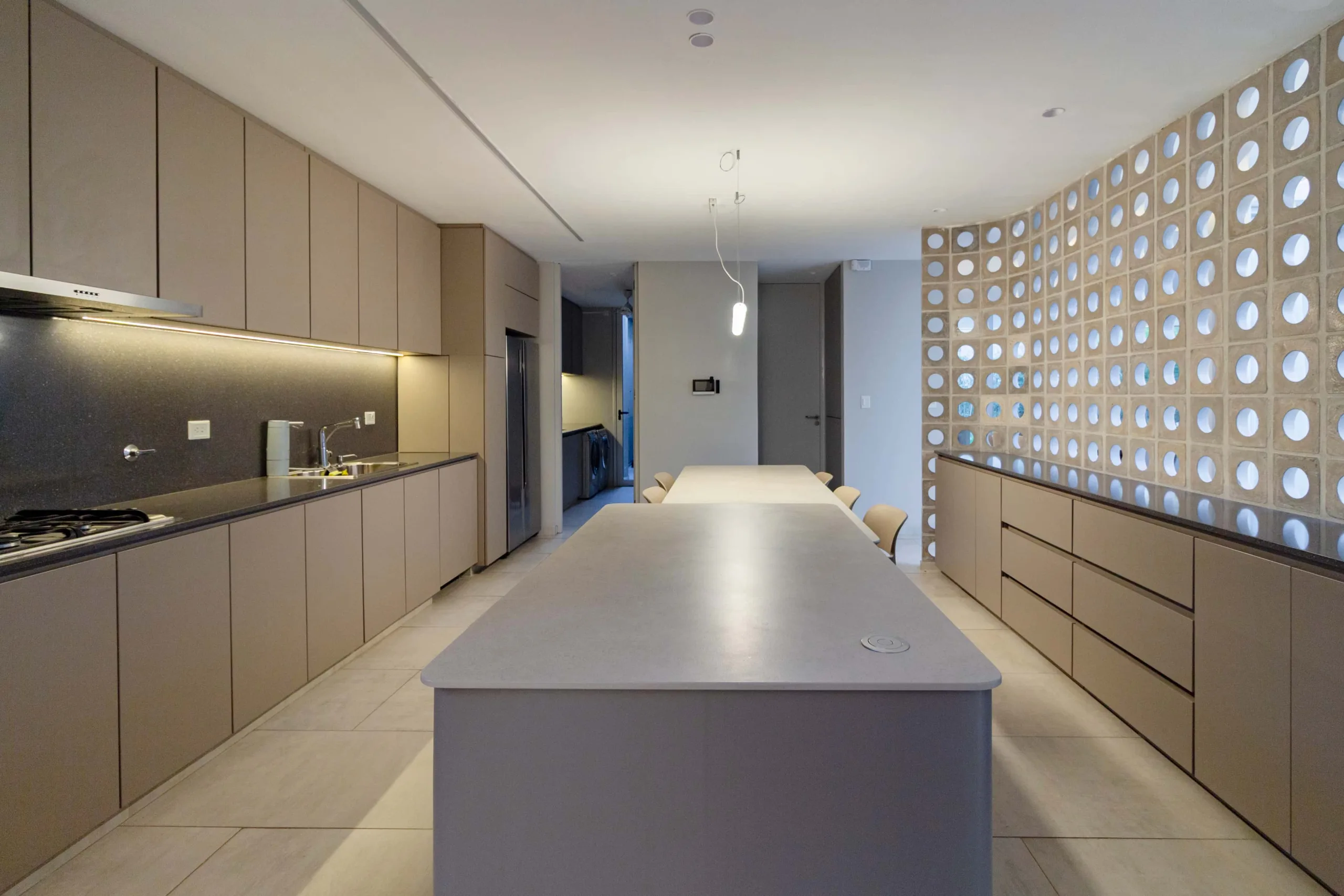 La ejecución del proyecto requirió una atención excepcional a los detalles exigiendo soluciones constructivas precisas en mobiliario, equipamiento, mesadas de piedra, iluminación y acabados en general.