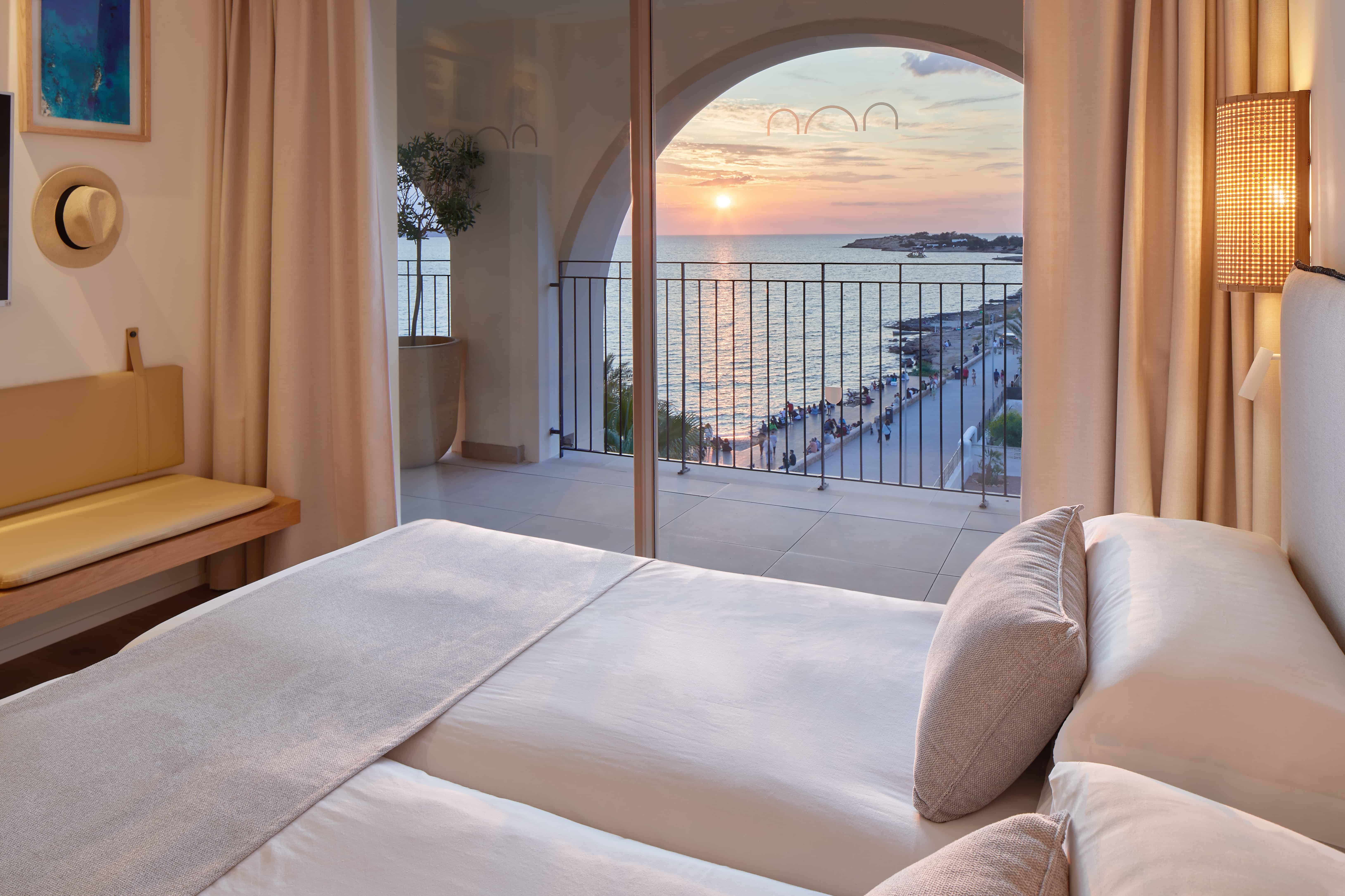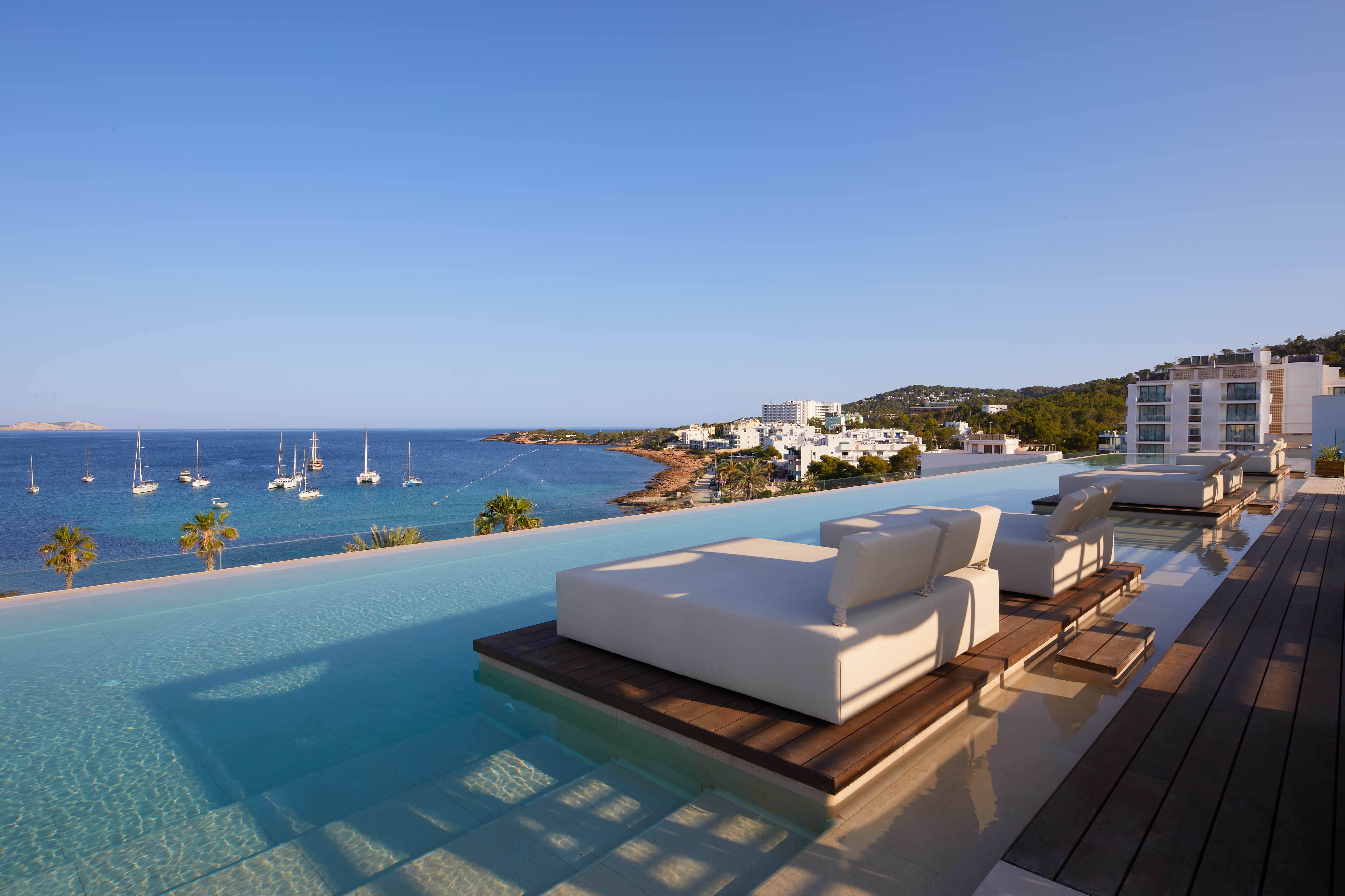 Entre los elementos más destacados se encuentra la nueva piscina infinity en la azotea, creada desde cero como un espacio de contemplación y exclusividad. Este rooftop funciona como un mirador privilegiado hacia el célebre atardecer de Sant Antoni, integrándose de forma natural con la nueva identidad del hotel y elevando la experiencia del huésped.