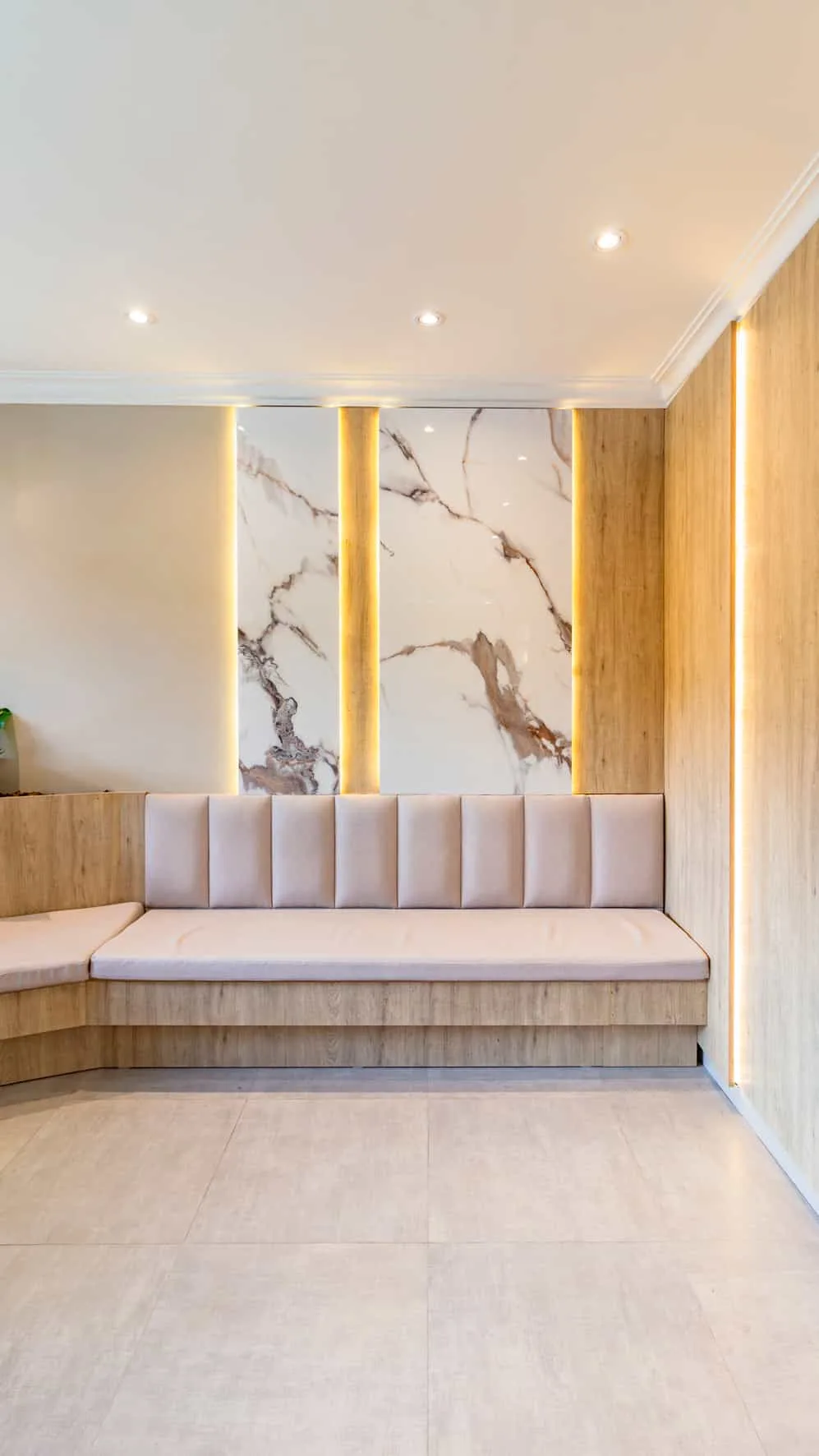 El resultado es un interior contemporáneo donde la luz, la materialidad y la precisión en los detalles construyen una experiencia espacial serena, transformando el espacio de salud en un lugar de bienestar y contención.
