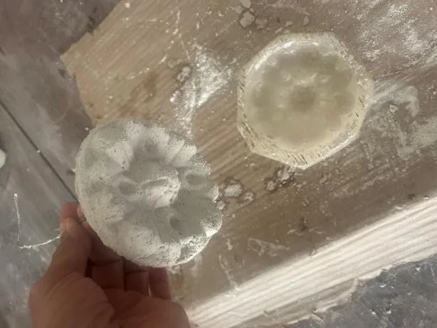 Los moldes de se realizarán silicona neutra transparente, previo al comienzo a fin de evitar dañar al ornato original se le aplicara desmoldante transparente, dejar secar y aplicar silicona en cantidad sobre la superficie del ornato en tres o cuatro etapas dejando pasar 24 hs entre ellas; dejar secar y realizar el retiro de la silicona ya fraguada obteniendo el molde exacto del ornato a reponer.
