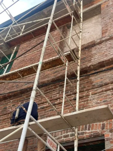 Donde se encuentran piezas ornamentales o molduras, pilastras, se deberá verificar el amarre de cada pieza y su grado de estabilidad, con el fin de retirar elementos sueltos evitando así su caída durante la ejecución de las tareas de limpieza.