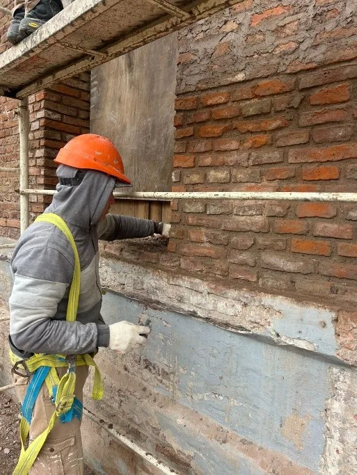 Se deberá realizar cateos y análisis de los morteros a fin de poder proceder a su reposición cuando existan faltantes, parches o retiro de intervenciones inadecuadas. Los estudios serán realizados por expertos en la materia se recomienda recurrir al LEMIT o Laboratorios especializados en materiales.